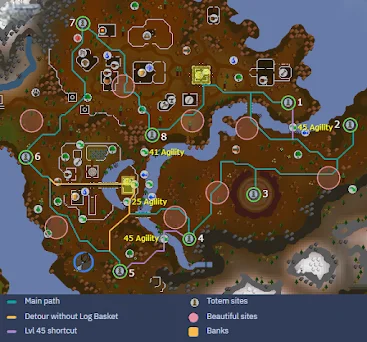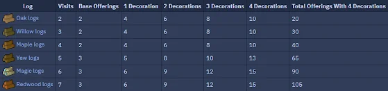 Log Management: You need about 40 logs per full run (8 totems + 32 decorations). A log basket makes this much more manageable.